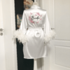 Halat Mireasa Personalizat Alb Universal cu Pene 2024255. Halat mireasa personalizat prin termotransfer. Lungimea este de 80 cm de la umar pana jos. Pretul afisat este doar pentru halat. Halatul face parte din categoria Halate.