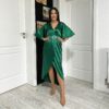Intretinere Rochie midi din satin cu crepe semicerc si bust petrecut si maneci lungi (catarama cadou) 202423