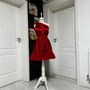 Intretinere Rochie pe o parte scurta din Satin cu Bordura de Tulle 20249