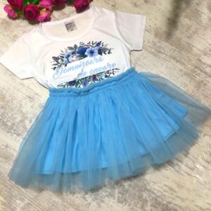 Set fusta plus tricou personalizat 2024245 Fusta din tulle, scurta din material tulle si jupa , culoare verde smarald si tricou personalizat . Se poate executa si in culori albastru, roz, verde, bordo, mov, lila,rosu,roz prafuit, albastru regal etc. Lungimea fustei din talie este de 50 cm. Setul face parte din categoria seturi personalizate domnisoara de onoare.